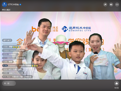 截至2022年,通用技術(shù)中紡標(biāo)已成功舉辦7屆小使者活動,輻射全國5大區(qū)域,報(bào)名人員近5000人,線下實(shí)驗(yàn)室參觀人員近2000人,線上網(wǎng)友參與人數(shù)近1800人,累計(jì)發(fā)放綠色小使者證書1000余份,參與合作媒體近10家,媒體報(bào)道近百篇(含轉(zhuǎn)載)。以最近一屆視頻號直播為例,觀看人數(shù)901人,觀看次數(shù)1749次,點(diǎn)贊次數(shù)41253次,評論次數(shù)650次,分享次數(shù)329次。