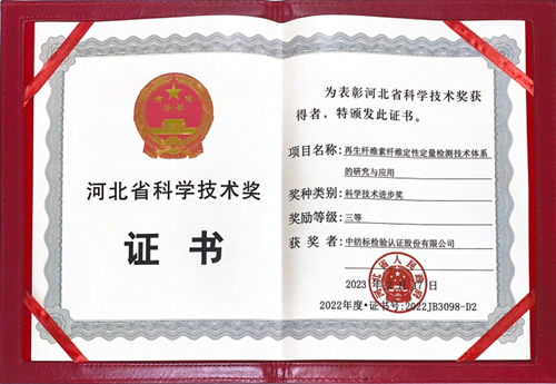 近日,由通用技術(shù)中國紡織科學研究院有限公司、通用技術(shù)中紡院中紡標檢驗認證股份有限公司等5家單位共同完成的“再生纖維素纖維定性定量檢測技術(shù)體系的研究與應用”項目榮獲“2022年度河北省科學技術(shù)進步獎”三等獎。