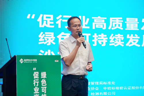 深圳市市場監(jiān)督管理局標(biāo)準(zhǔn)處副處長徐均偉在致辭中表示,深圳市場監(jiān)督管理局標(biāo)準(zhǔn)處致力于推動高標(biāo)準(zhǔn)和質(zhì)量,同樣也注重企業(yè)對環(huán)境和社會的責(zé)任,鼓勵和支持企業(yè)推動綠色轉(zhuǎn)型。他代表標(biāo)準(zhǔn)處感謝中紡標(biāo)搭建溝通交流平臺,發(fā)揮權(quán)威檢驗(yàn)檢測機(jī)構(gòu)的影響力,匯聚合力幫助企業(yè)完成綠色轉(zhuǎn)型。“路雖遠(yuǎn),行則將至,事雖難,做則必成”,他同時呼吁更多的力量加入到“雙碳”行動中來,助力行業(yè)實(shí)現(xiàn)綠色發(fā)展。