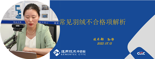 8月15日,由通用技術(shù)中紡院中紡標(biāo)檢驗認(rèn)證股份有限公司(以下簡稱“中紡標(biāo)”)和國家紡織制品質(zhì)量檢驗檢測中心聯(lián)合主辦的2023'CTTC中紡標(biāo)云課堂線上培訓(xùn)成功舉辦。中紡標(biāo)檢測事業(yè)部技術(shù)部技術(shù)負(fù)責(zé)孫靜與深圳公司質(zhì)量技術(shù)部負(fù)責(zé)人劉鵬分別在北京、深圳兩地攜手,與近200家紡織服裝企業(yè)相約“云”上,共同開啟本次培訓(xùn)。