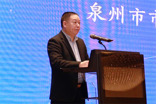 泉州市市場監(jiān)督管理局調(diào)研員劉華致辭。劉華介紹了泉州的紡織服裝品牌,注重品牌引領(lǐng)產(chǎn)業(yè)升級,希望紡織領(lǐng)域?qū)<抑С秩菁徔椥袠I(yè)發(fā)展,助力泉州紡織業(yè)高端化、智能化、綠色化、融合化發(fā)展。