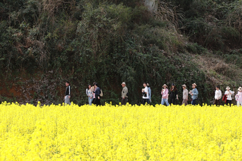 伴著和煦的春風(fēng),滿載著職工的大巴車(chē)從公司出發(fā)。一路上大家歡聲笑語(yǔ)、其樂(lè)融融,大概一個(gè)半小時(shí)車(chē)程后,大家到達(dá)了此次活動(dòng)的第一站——陳蔡千畝油菜花田。景區(qū)內(nèi)盛開(kāi)的油菜花競(jìng)相爭(zhēng)艷,散發(fā)出濃濃春意。大家卸下平日工作中的緊張和疲憊,漫步于油菜花田,紛紛拿出相機(jī)拍照留念,盡情享受春光里的無(wú)限美好。