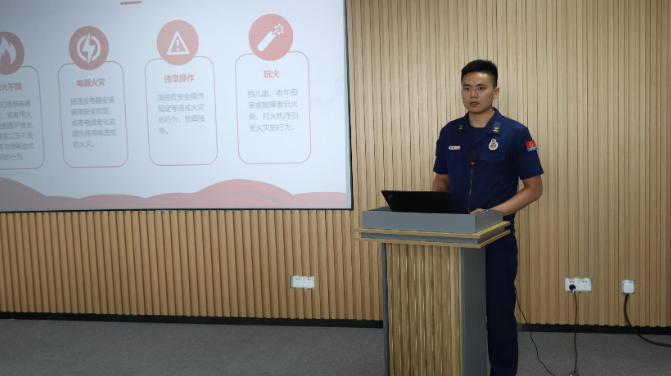 緊接著,紹興市濱海新區(qū)大隊袍中路消防救援站婁銀偉為大家?guī)砹艘粓鰧I(yè)的消防安全防火培訓(xùn)。婁消防員從火災(zāi)的成因、預(yù)防措施、逃生技巧等方面進(jìn)行了全面講解,并結(jié)合實際案例,讓大家深刻認(rèn)識到火災(zāi)的危害性和防火工作的重要性。他還現(xiàn)場演示了消防器材的使用方法,讓大家對消防設(shè)施有了更直觀的認(rèn)識。