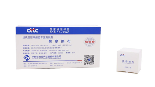 T/CNTAC RM 1-2019 《紡織品耐摩擦色牢度測試用棉摩擦布標(biāo)準(zhǔn)用品》( GSB 16-3631-2022)依據(jù)GB/T 33729-2017(ISO 105-F09:2009,MOD)《紡織品 色牢度試驗 棉摩擦布》研制,適用于GB/T 3920(ISO 105-X12:2001,MOD)《紡織品 色牢度試驗 耐摩擦色牢度》和GB/T 29865(ISO 105-X16:2001,MOD)《紡織品 色牢度試驗 耐摩擦色牢度 小面積法》,試驗時安裝在耐摩擦色牢度試驗儀的摩擦頭上作為摩擦布對試樣進行干、濕摩擦試驗。