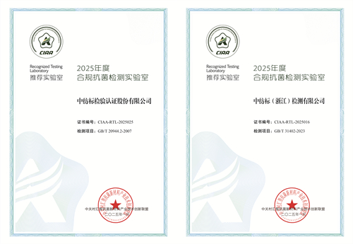 喜訊!通用技術(shù)中紡標(biāo)兩地實(shí)驗(yàn)室榮獲2025年度CIAA推薦合規(guī)抗菌檢測(cè)實(shí)驗(yàn)室