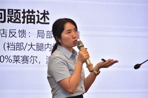 李寅在《印花產(chǎn)品質(zhì)量管控經(jīng)驗(yàn)分享》的報(bào)告中,結(jié)合實(shí)際案例詳細(xì)分析了印花產(chǎn)品中常見的印花變色、黃變、起翹脫層、開裂等質(zhì)量問題與管控方法,同時(shí)分享了印花耐濕熱色牢度檢測(cè)方法標(biāo)準(zhǔn)的相關(guān)研究,通過介紹相關(guān)顏色變化的原因、提出解決問題的辦法,結(jié)合實(shí)際退殘率數(shù)據(jù)的下降說明質(zhì)量管控方法的有效性。