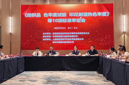 2025年9月3日~4日,全國(guó)紡織品標(biāo)準(zhǔn)化技術(shù)委員會(huì)基礎(chǔ)標(biāo)準(zhǔn)分會(huì)(TC209/SC1)在安吉召開(kāi)了《紡織品 色牢度試驗(yàn) 印花耐濕熱色牢度》等10項(xiàng)國(guó)家標(biāo)準(zhǔn)和行業(yè)標(biāo)準(zhǔn)審定會(huì)。中國(guó)紡織工業(yè)聯(lián)合會(huì)科技發(fā)展部副主任、全國(guó)紡織品標(biāo)委會(huì)基礎(chǔ)標(biāo)準(zhǔn)分會(huì)主任委員孫錫敏,通用技術(shù)中國(guó)紡織科學(xué)研究院有限公司總經(jīng)理、全國(guó)紡織品標(biāo)委會(huì)基礎(chǔ)標(biāo)準(zhǔn)分會(huì)副主任委員馬詠梅,全國(guó)紡織品標(biāo)委會(huì)基礎(chǔ)標(biāo)準(zhǔn)分會(huì)顧問(wèn)鄭宇英出席會(huì)議。來(lái)自科研院所、海關(guān)、質(zhì)檢系統(tǒng)、檢驗(yàn)機(jī)構(gòu)、生產(chǎn)企業(yè)以及標(biāo)準(zhǔn)起草單位的120余名代表參加了本次會(huì)議。